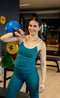 Soddisfatto dei leggings e della canotta abbinata