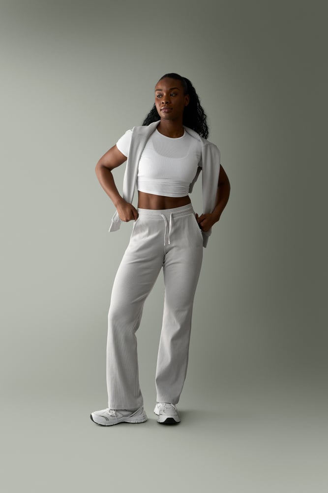 Pantaloni lounge a coste. Recharge è una collezione di abbigliamento lounge realizzata in un tessuto a coste super morbido con una sensazione liscia. Combina le comode top e i pantaloni per migliorare il tuo giorno di riposo e lascia che il tuo corpo si ricarichi. Perfetti pantaloni lounge comodi con vita con coulisse e tasche.