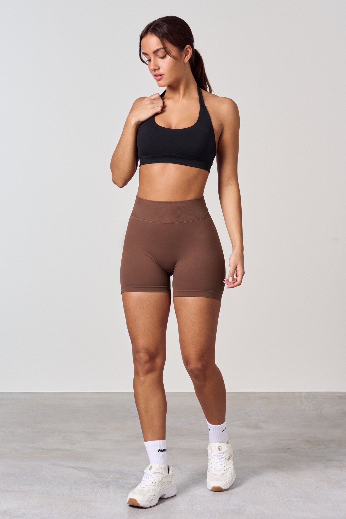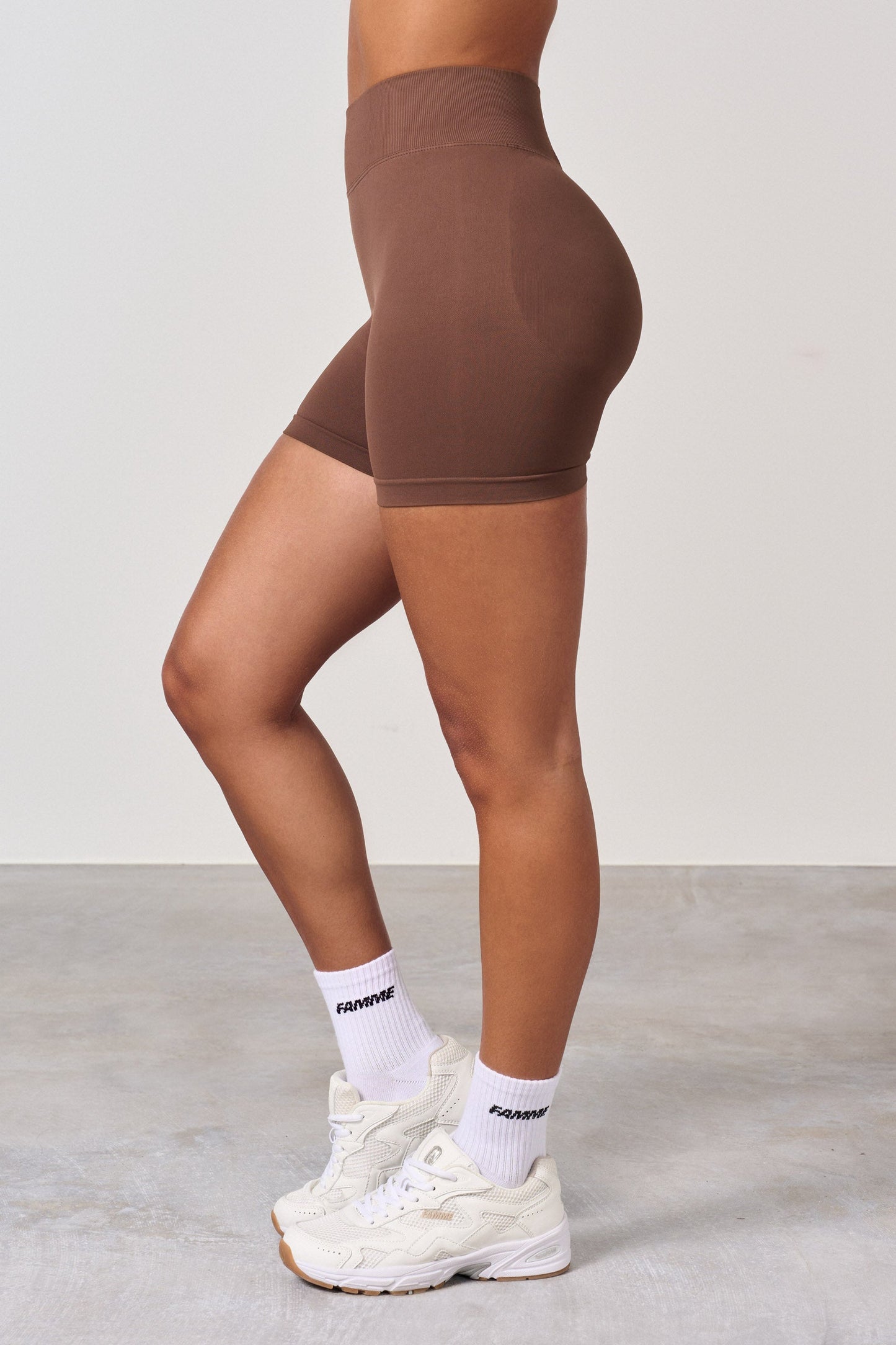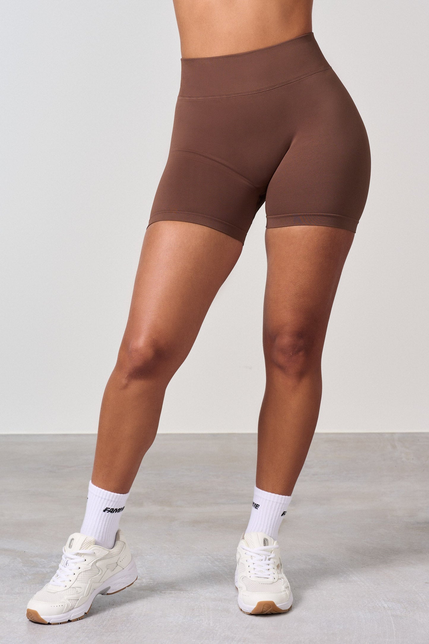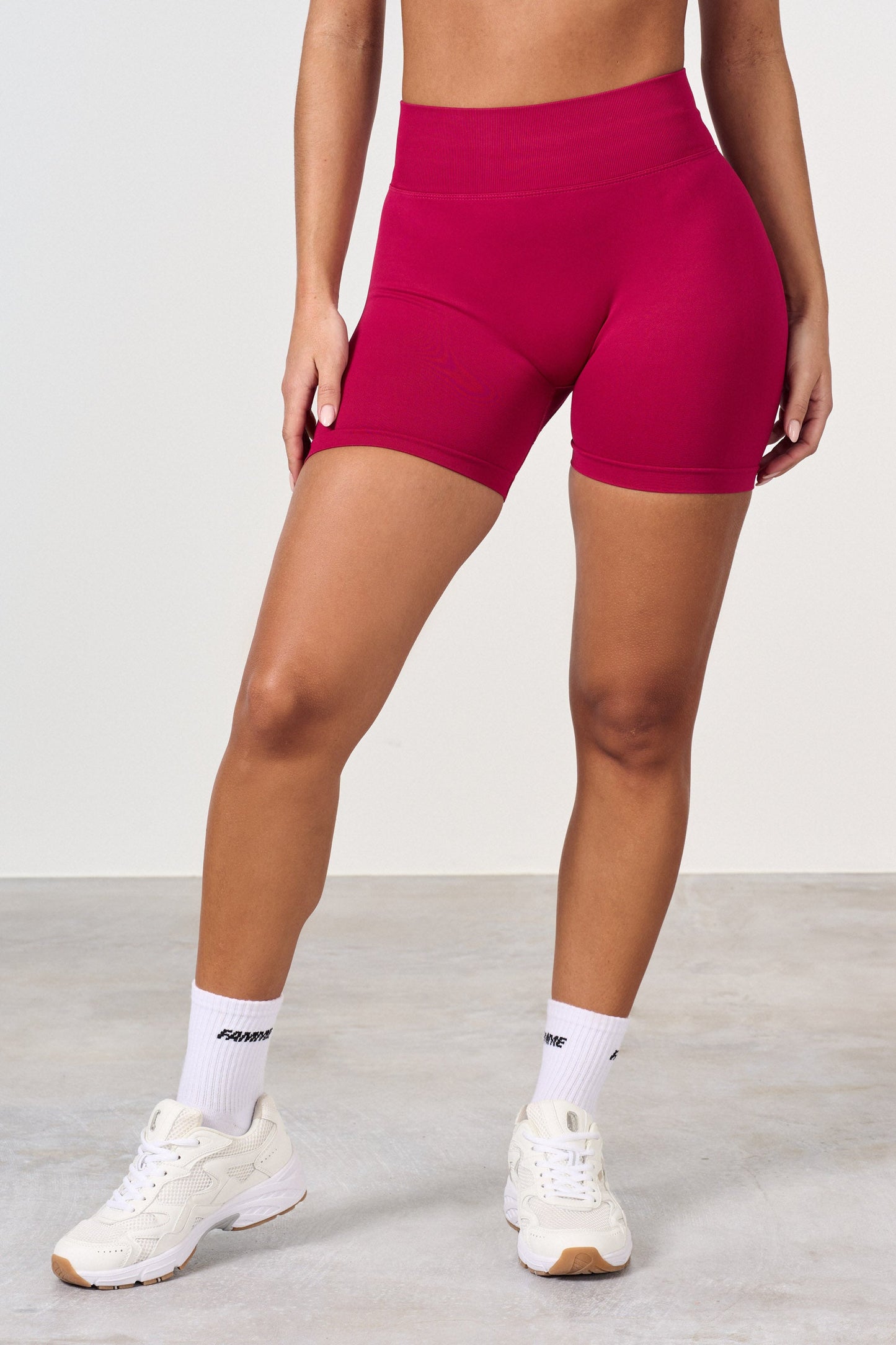 Shorts da allenamento a vita alta con effetto scrunch. Il nuovo effetto scrunch conferisce ai glutei una forma naturale, pelle liscia e senza pieghe. Gli shorts scrunch offrono l'effetto desiderato su tutti i glutei, ma a malapena si nota che hanno lo scrunch. Gli shorts non hanno cucitura frontale e si adattano bene intorno alla vita. Gli shorts sono un po' più corti in vita rispetto ai leggings.